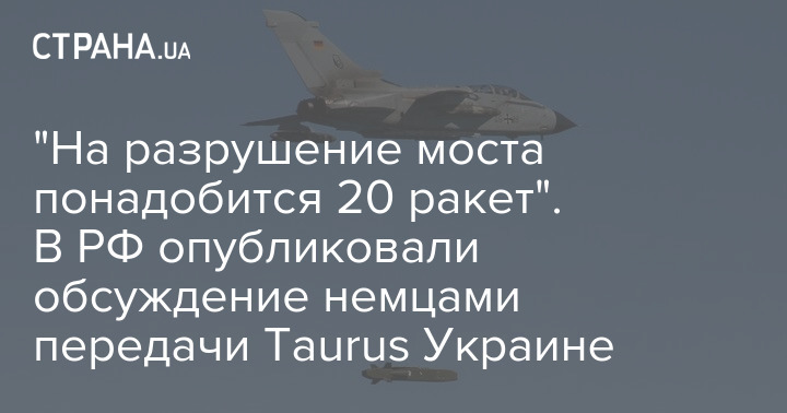 В ФРГ также обсуждали перспективу удара ВСУ по российскому мосту. Название объекта в разговоре не упоминалось, но, вероятно, имелся в виду Крымский мост. Один из участников разговора отметил, что одна ракета Taurus только "сделает дыру" в мосте, а на его разрушение уйдет "не 10 и даже не 20 ракет".