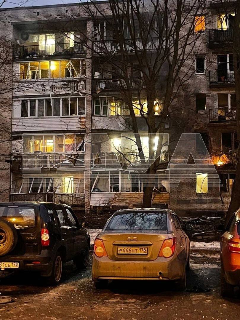 Также в сети появилось видео прилета дрона по жилому дому в Санкт-Петербурге. Жители многоэтажки эвакуированы.