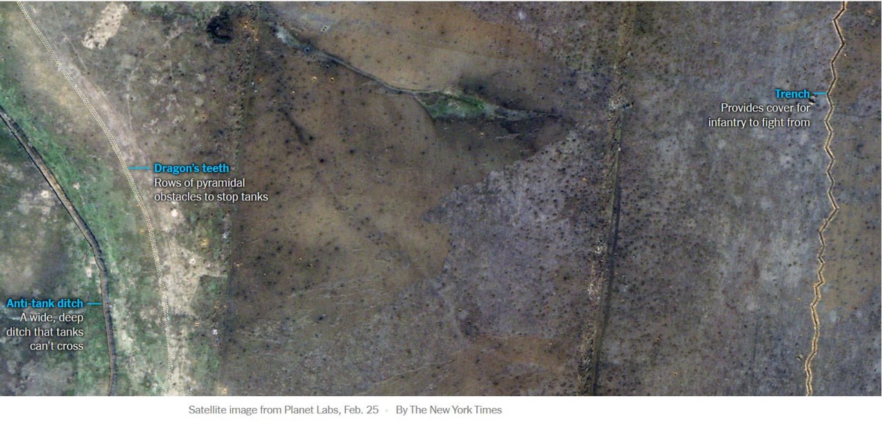 "На этих линиях траншей отсутствуют многие дополнительные укрепления, которые могли бы помочь замедлить российские танки и защитить основные дороги", - говорится в статье