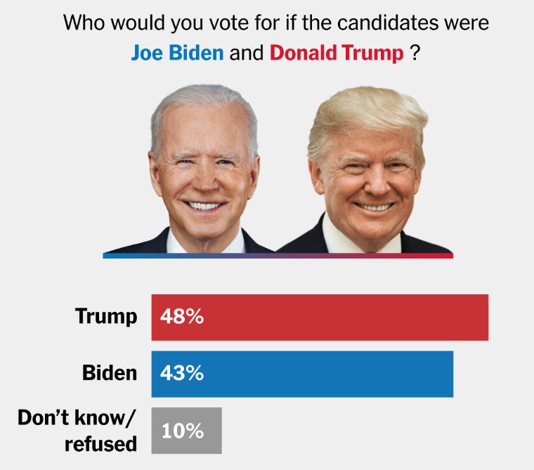 Экс-президент США Дональд Трамп опережает действующего президента Джо Байдена в новом опросе.