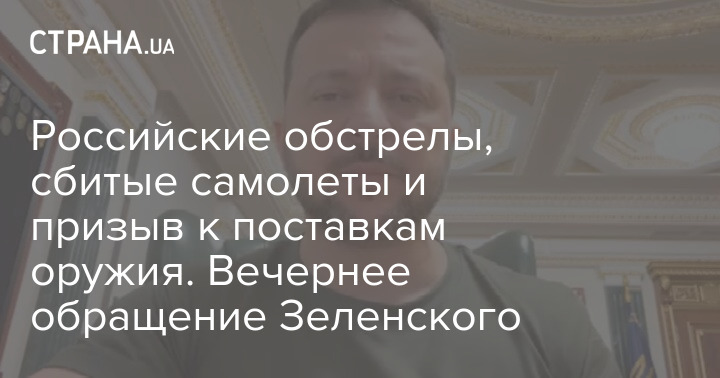 Российские обстрелы, сбитые самолеты и призыв к поставкам оружия. Вечернее обращение Зеленского