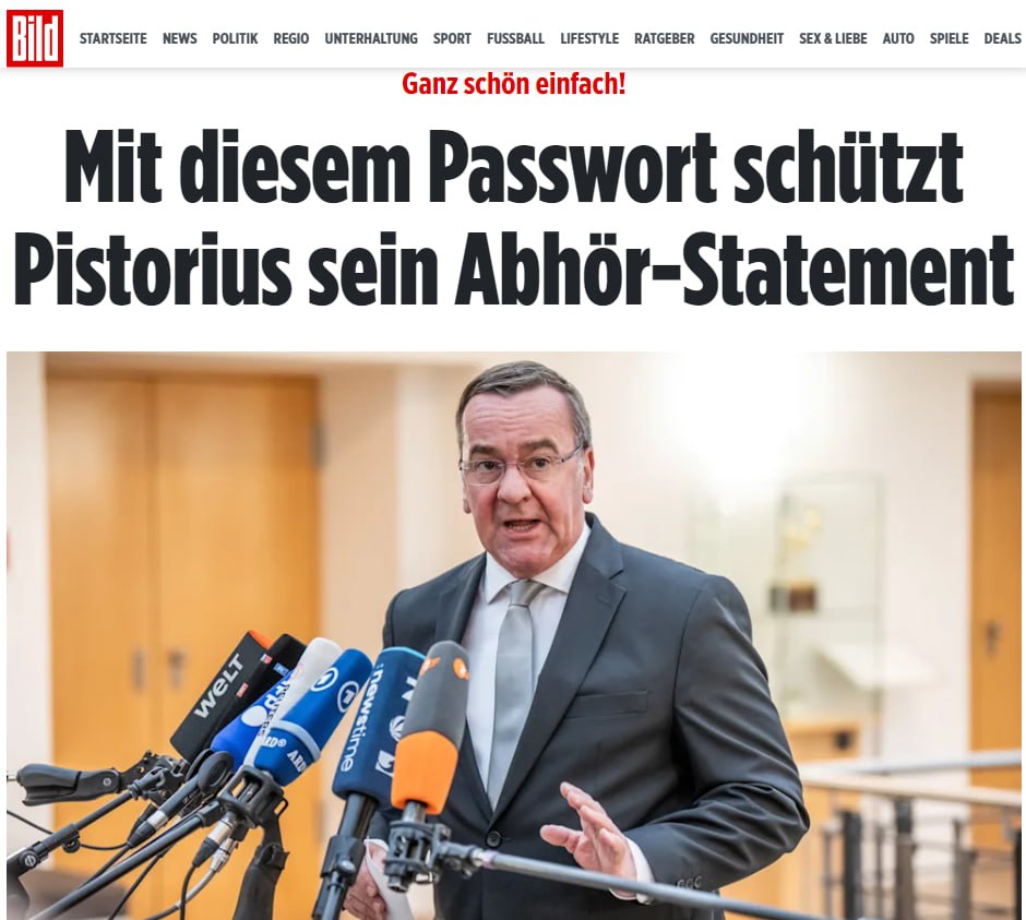 Минобороны ФРГ защитило комментарий министра Бориса Писториуса об утечке переговоров бундесвера паролем "1234".