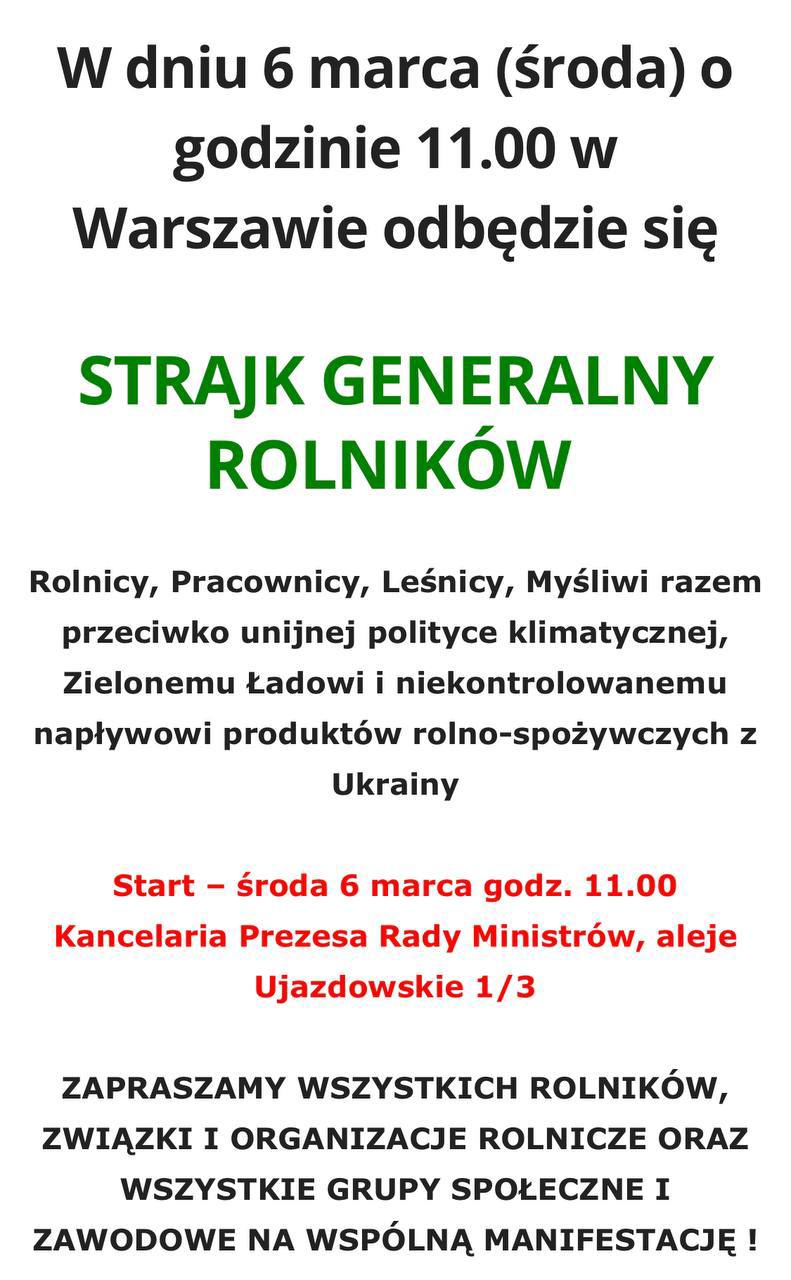 Также польские профсоюзы фермеров анонсировали крупную акцию протеста в Варшаве на 6 марта на 11:00.