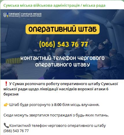 Власти города заявили, что возле мест прилетов развернуты штабы по ликвидации последствий. Они должны работать с 8 утра.