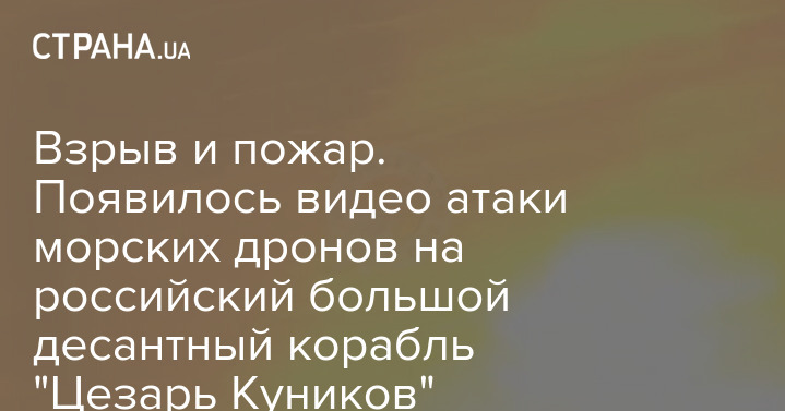 Взрыв и пожар. Появилось видео атаки морских дронов на российский большой десантный корабль "Цезарь Куников"