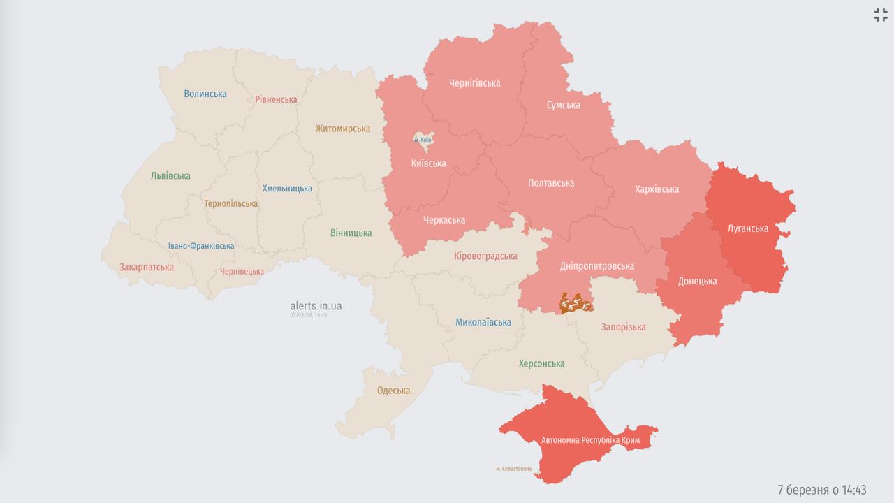 14.40 В Киевской области и ряде других регионов объявлена воздушная тревога.