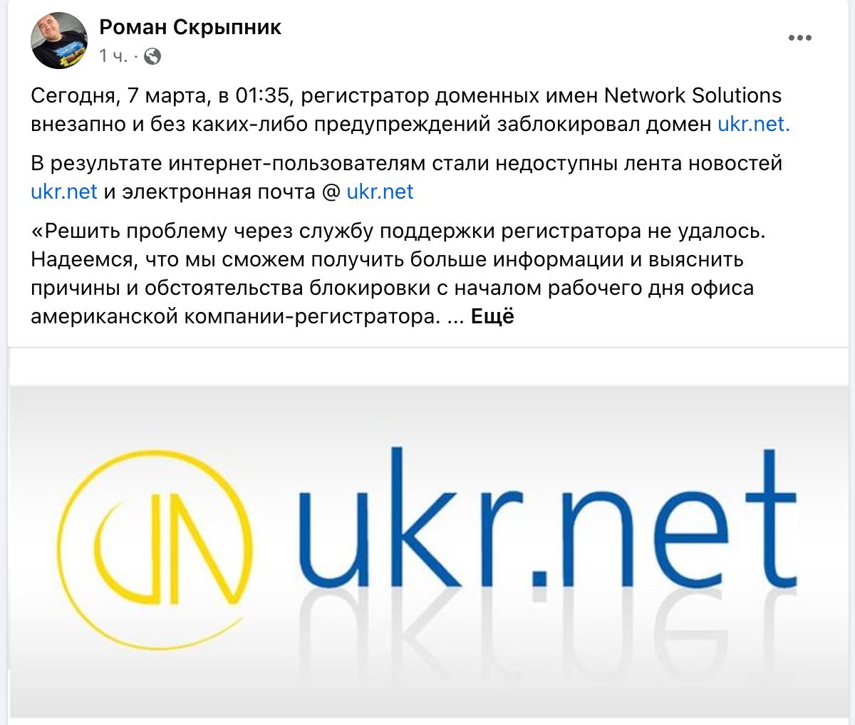 "Решить проблему через службу поддержки регистратора не удалось. Надеемся, что мы сможем получить больше информации и выяснить причины и обстоятельства блокировки с началом рабочего дня офиса американской компании-регистратора. Также обратились с просьбой о помощи к чрезвычайному и полномочному послу Украины в США Оксане Маркаровой", - сообщает коммерческий директор портала Роман Скрыпник.