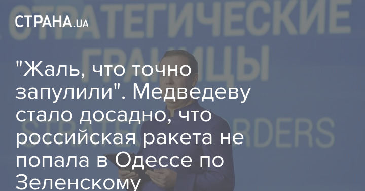 "Жаль, что точно запулили". Медведеву стало досадно, что российская ракета не попала в Одессе по Зеленскому
