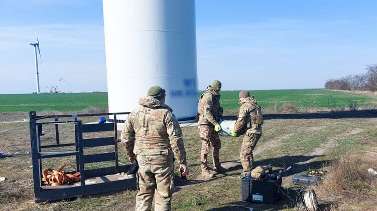 В Николаевской области взрывотехники достали боевую часть "Шахеда", которая застряла в винте ветряка.