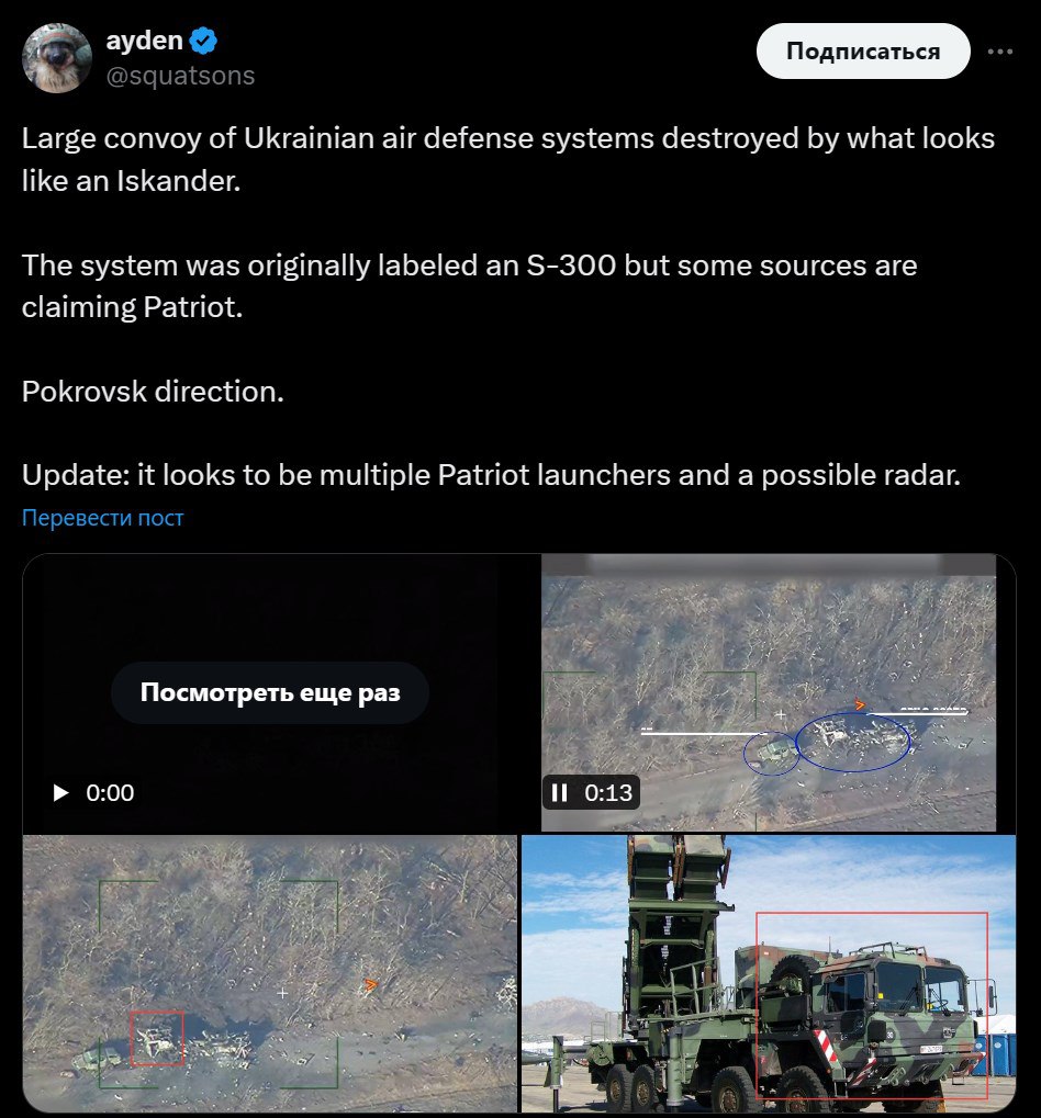 Милитари-блогер Ayden из США также пишет, что под удар "Искандера" попали "несколько пусковых установок "Пэтриот" и, возможно, радар".