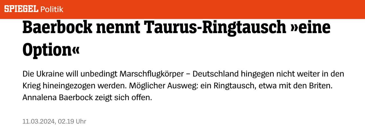"Это был бы вариант. Обмен кольцами - это, так сказать, немецкое изобретение. Это был бы вариант. И мы уже делали это с другими материалами некоторое время назад", - заявила Анналена Бербок.