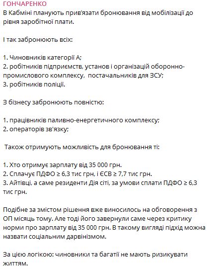 Напомним, что премьер-министр Денис Шмыгаль официально подтверждал, что средняя зарплата и уровень уплаты налогов будут критериями бронирования.