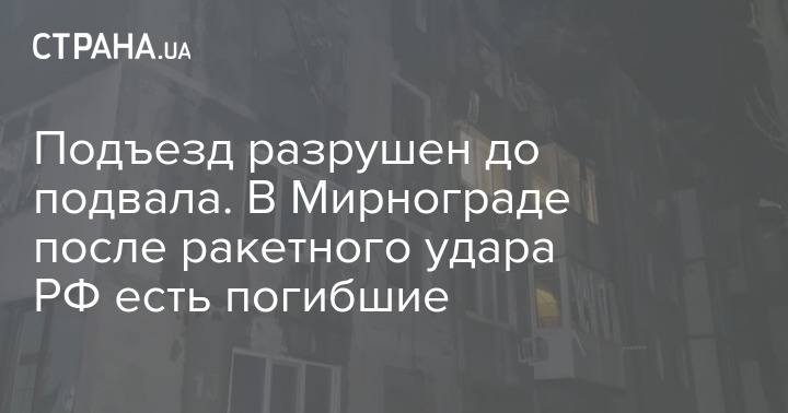 Российские военные, вечером 12 марта, ударили по многоэтажке в Мирнограде Донецкой области. Есть разрушения дома. Два человека погибли, еще пятеро получили ранения. Поисково-спасательные работы завершены.