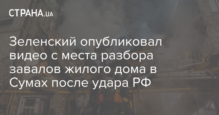 Зеленский опубликовал видео с места разбора завалов жилого дома в Сумах после удара РФ