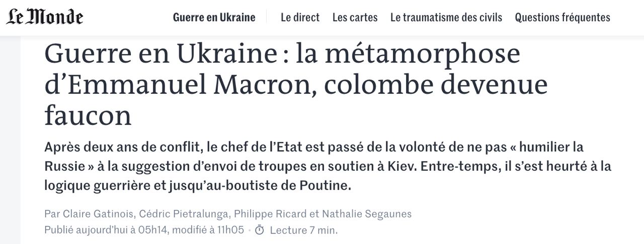 Как мы писали, заявление Макрона об отправке войск вызвало критику руководства стран Запада, однако некоторые государства поддержали идею президента Франции. В частности, вчера премьер-министр Эстонии Кая Каллас отказалась гарантировать, что эстонские военные не будут направлены в Украину, и назвала Россию "прямой угрозой" для Эстонии.