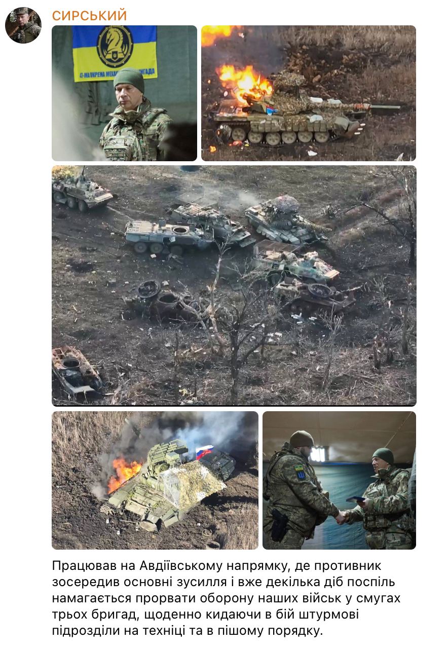 Ранее главком Александр Сырский заявил о том, что россияне пытаются прорвать оборону ВСУ под Авдеевкой.
