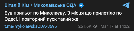В воскресенье, 17 марта, РФ ударила баллистическим вооружением по Николаеву. В городе было слышно два взрыва, на данный момент известно о пяти пострадавших.