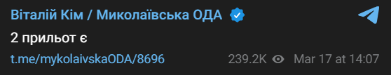 Об этом сообщает глава Николаевской ОВА Виталий Ким.