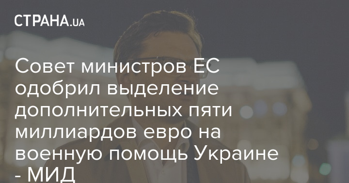 Совет министров иностранных дел Евросоюза принял окончательное решение о выделении дополнительных 5 миллиардов евро на военную поддержку Украины в рамках Европейского фонда мира.