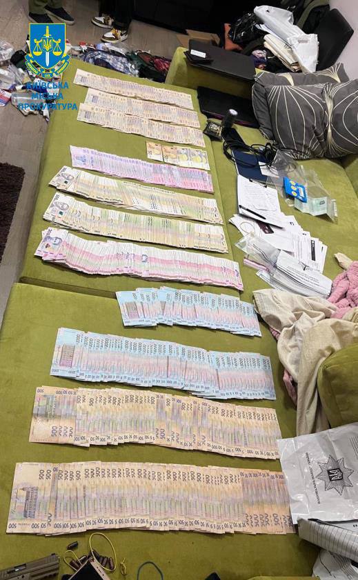 Во время обысков у подозреваемых были изъяты около полумиллиона гривен, мобильные телефоны, компьютерное оборудование, поддельные документы и печати воинских частей, гуманитарная помощь, военная форма и другие материальные улики.
