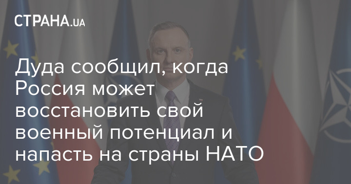 "Россия может в скором времени иметь такой военный потенциал, что будет в состоянии напасть на НАТО уже в 2026-27 годах", - заявил Дуда.