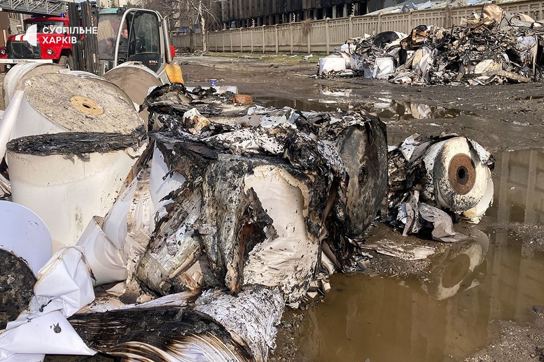 Утренние кадры с места вчерашнего прилёта по типографии в Харькове. Фото: суспильне