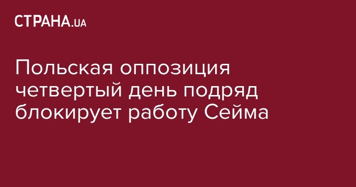 Польская оппозиция четвертый день подряд продолжает блокировать польский Сейм. Об этом сообщает Польское радио.