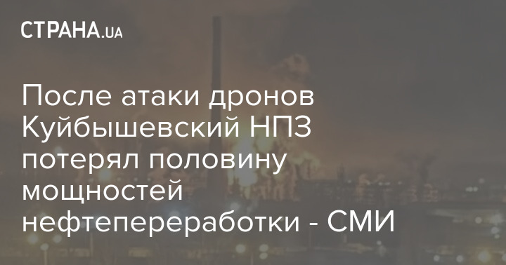 Куйбышевский нефтеперерабатывающий завод в Самарской области РФ потерял половину нефтепереработки после атаки беспилотников и пожара 23 марта.