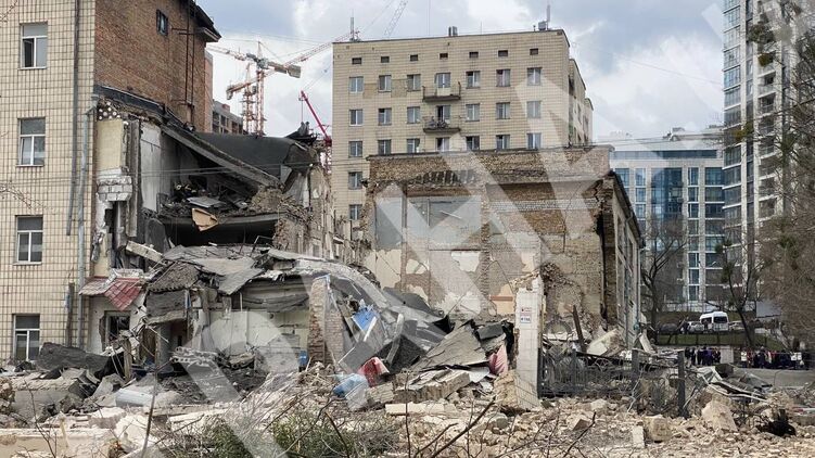 Полностью разрушенным оказалось здание в Печерском районе столицы, которое принадлежало Академии декоративно-прикладного искусства и дизайна, расположенное на улице Бойчука.