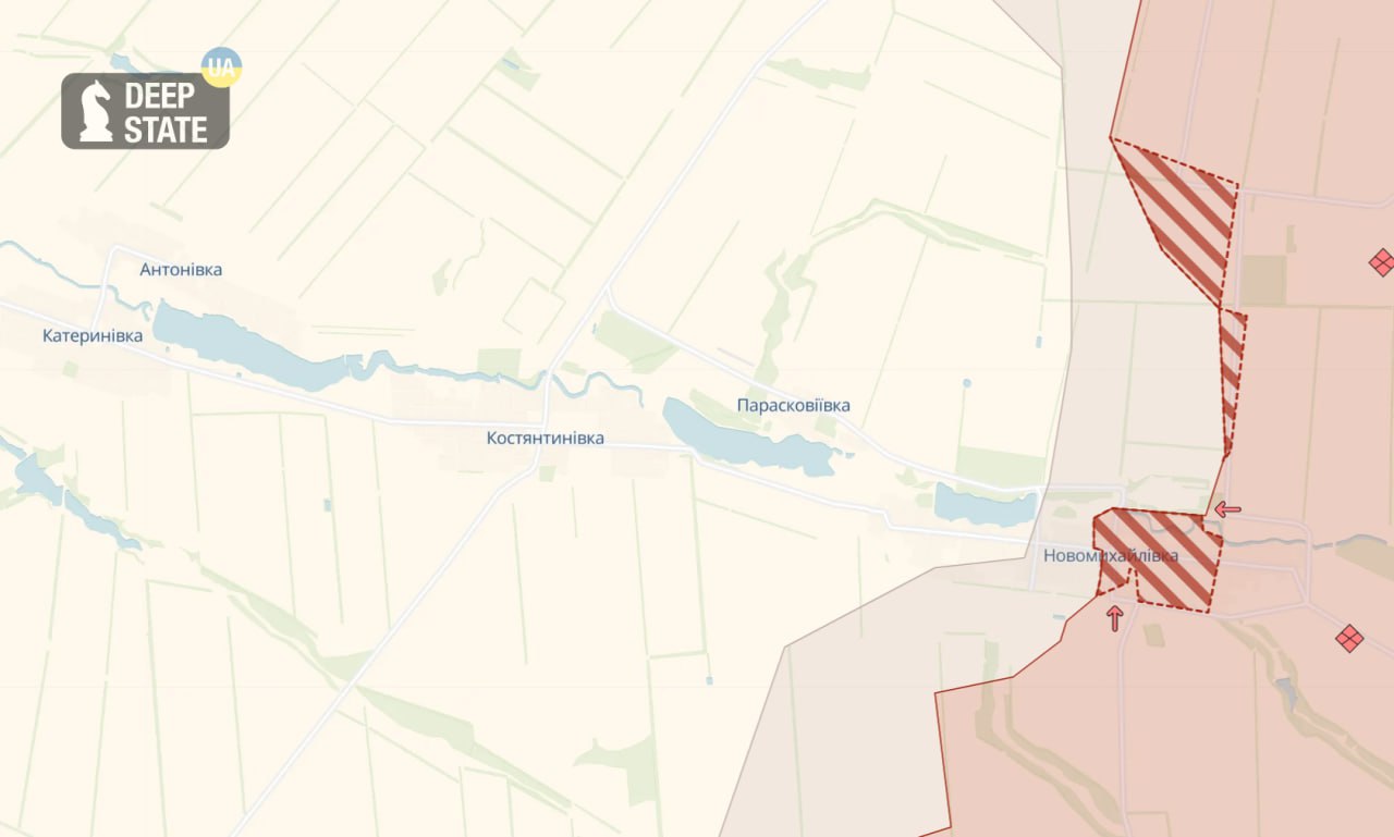 По данным украинского военного паблика Deep State, российские войска продвинулись в окрестностях Новомихайловки и в самом селе. Судя по карте, около половины населённого пункта находится под контролем РФ, ещё треть в серой зоне.