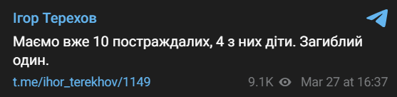 Сегодня днем российские военные ударили по Харькову, в результате сильно пострадали 14 многоквартирных домов в Шевченковском районе. В результате обстрела один человек погиб. Еще шестнадцать человек получили ранения, среди них четверо детей. Самому младшему ребенку 3 месяца.