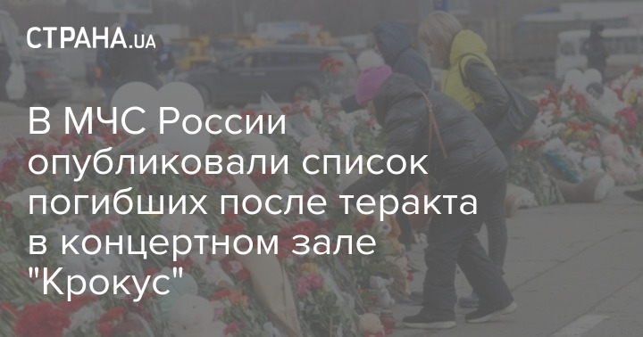 В Министерстве чрезвычайных ситуаций (МЧС) России опубликовали список погибших в результате теракта на концере группы "Пикник" в концертном зале "Крокус Сити Холл".