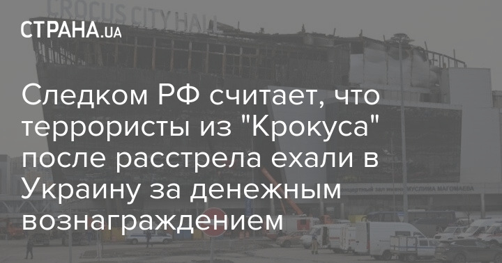 Следственный комитет России сообщил, что террористы, устроившие массовый расстрел в "Крокус Сити Холле" 22 марта, планировали прибыть в Киев для получения денежного вознаграждения.