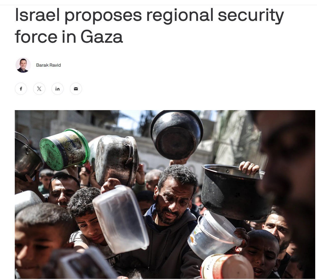 Тель-Авив предлагает, чтобы арабские силы остались в Газе на ограниченный переходный период и отвечали за охрану временного пирса, который США построят у побережья, и за сопровождение гуманитарных конвоев, чтобы помощь доходила до населения и не попадала под контроль ХАМАС.