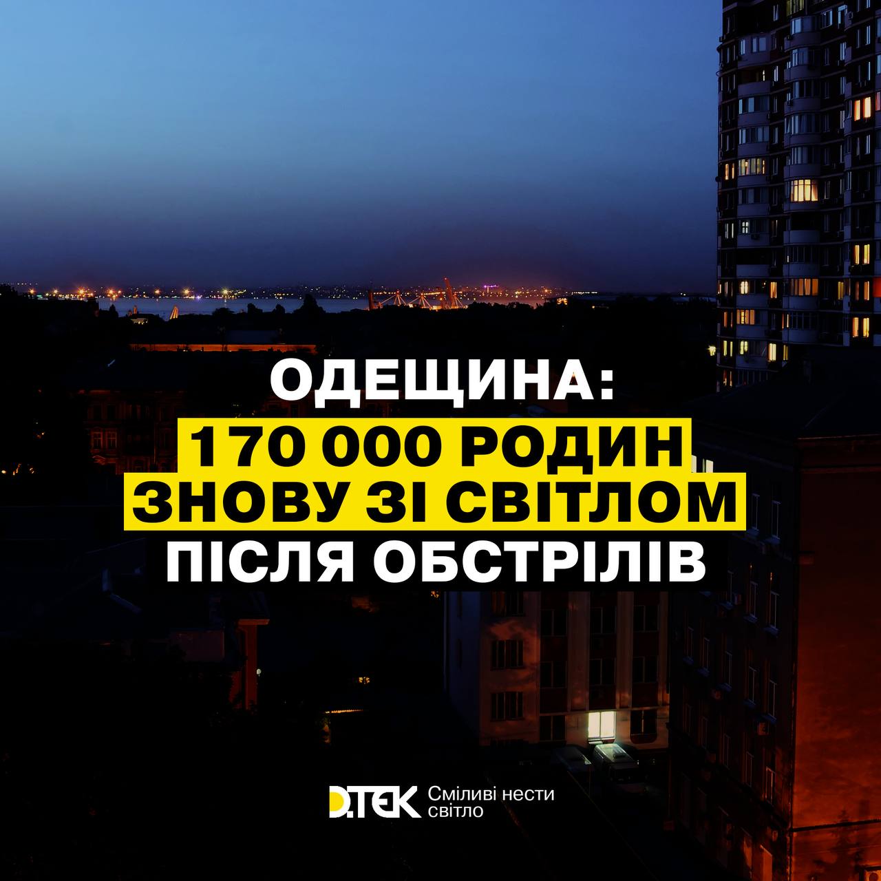 11:14 В Одесской области после ночного удара "Шахедов" без света оказались 170 тысяч домохозяйств.