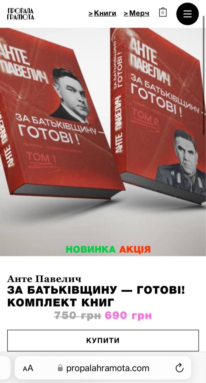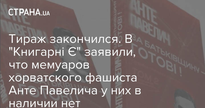 В сети книжных магазинов "Книгарня Є" после скандала заявили "Стране", что мемуаров хорватского фашиста, союзника Гитлера Анте Павелича у них в наличии нет - ни в онлайне, ни в физическом магазине.