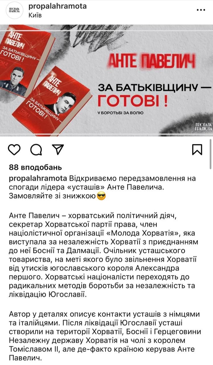 Напомним, книга вызвала скандал в сети, так как Павелич проводил во время Второй мировой войны этнические чистки. Также под руководством Павелича проходило массовое уничтожение сербов и ромов.