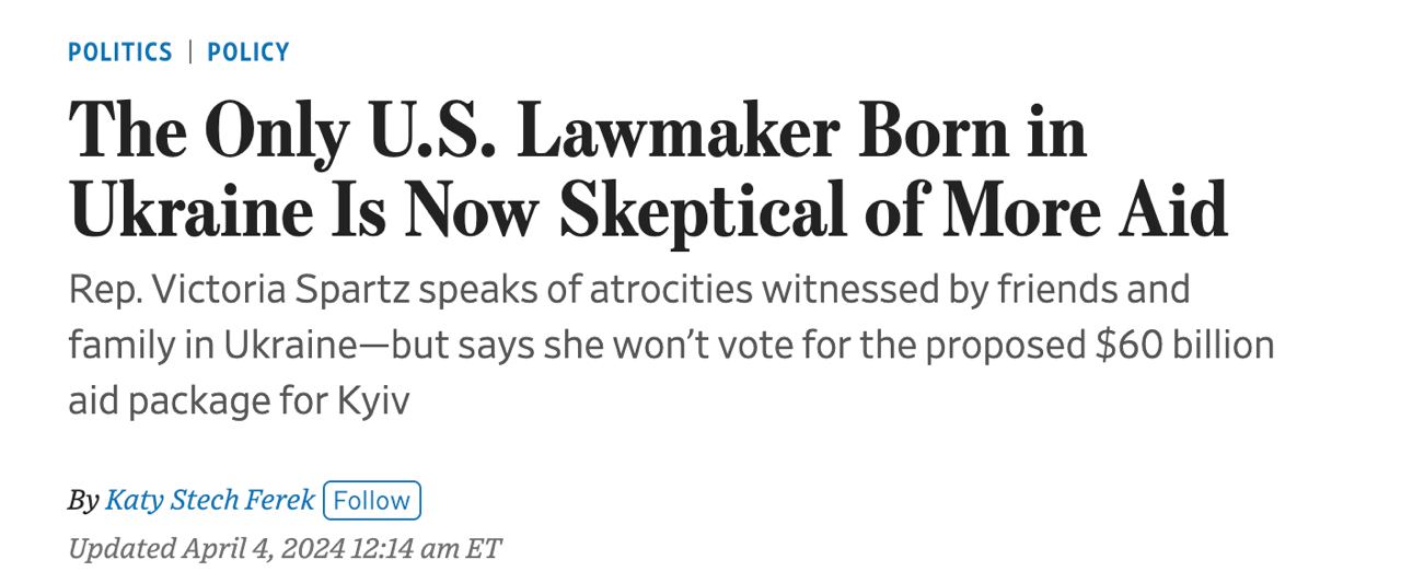14.00 Уроженка Украины, конгрессвумен Виктория Спартц заявила, что не поддерживает законопроект Сената о выделении Украине 60 млрд долл. помощи, сообщает The Wall Street Journal.