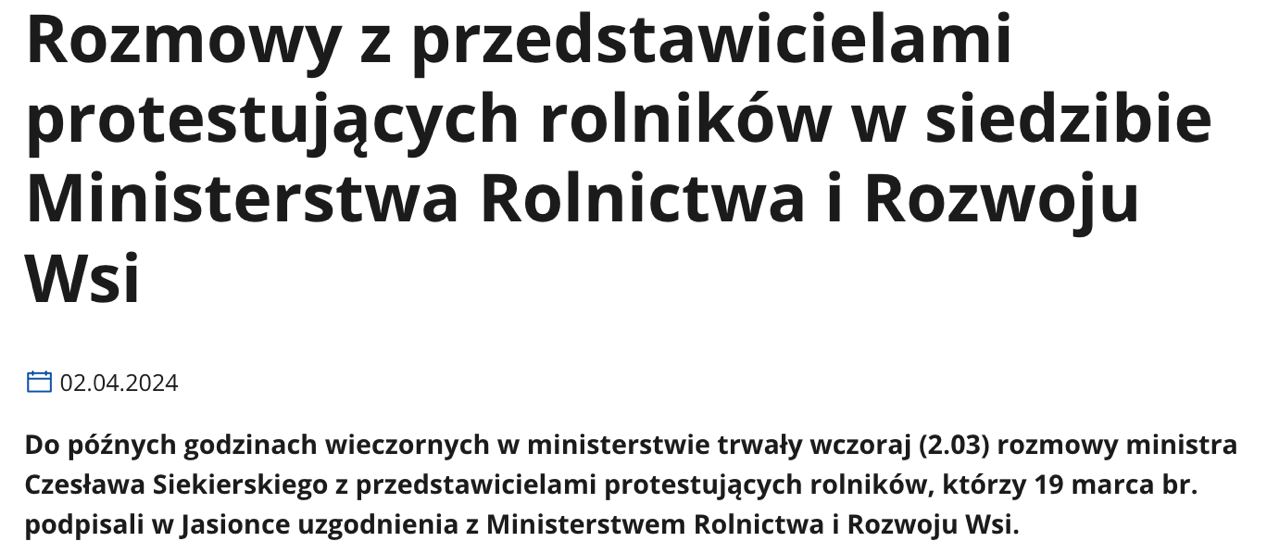 "В связи с тем, что украинская сторона объявила о минимизации транзита своей сельскохозяйственной продукции через Польшу с апреля по июнь этого года, Министерство сельского хозяйства и развития села не обращалось с просьбой прекратить транзит украинской сельскохозяйственной продукции через Польшу", — говорится в сообщении.