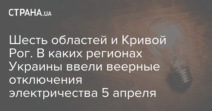 Шесть областей и Кривой Рог. В каких регионах Украины ввели веерные отключения электричества 5 апреля