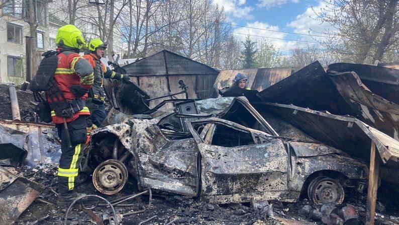 В результате ударов повреждено по меньшей мере 13 многоэтажек и частных домов, учебные заведения, кафе, общежитие, гостиница, автомобили, гаражи.