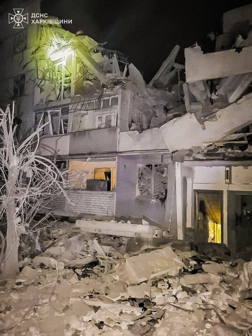 09:39 Последствия прилета авиабомбы по Купянску. Разрушено четырехэтажное здание, погибла женщина.