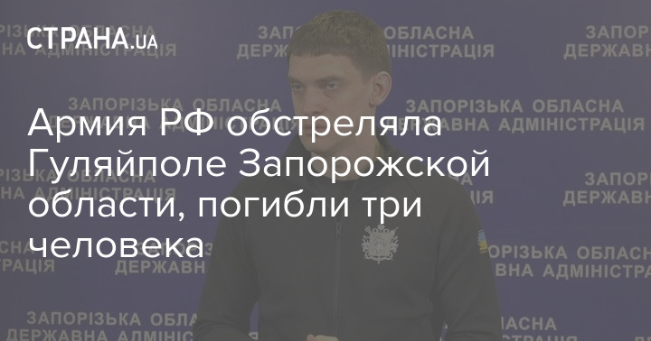 "Россияне обстреляли из "Градов" прифронтовое Гуляйполе Запорожской области и убили трех гражданских людей. Двое мужчин и женщина погибли под завалами собственного дома, в который попал российский снаряд", - говорится в сообщении.