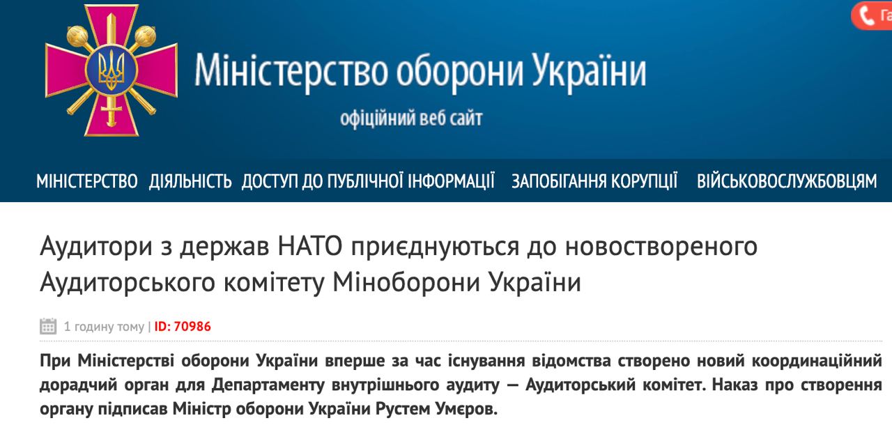 При Минобороны создали Аудиторский комитет, в который вошли аудиторы из стран НАТО и Украины.