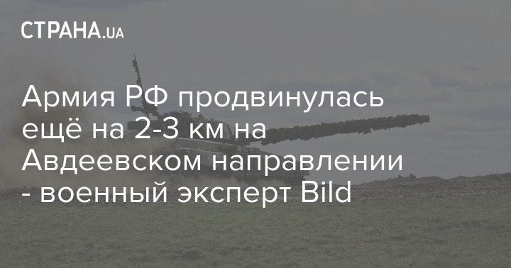 Военный эксперт Bild Юлиан Рёпке пишет, что армия РФ продвинулась ещё на 2-3 км на Авдеевском направлении.