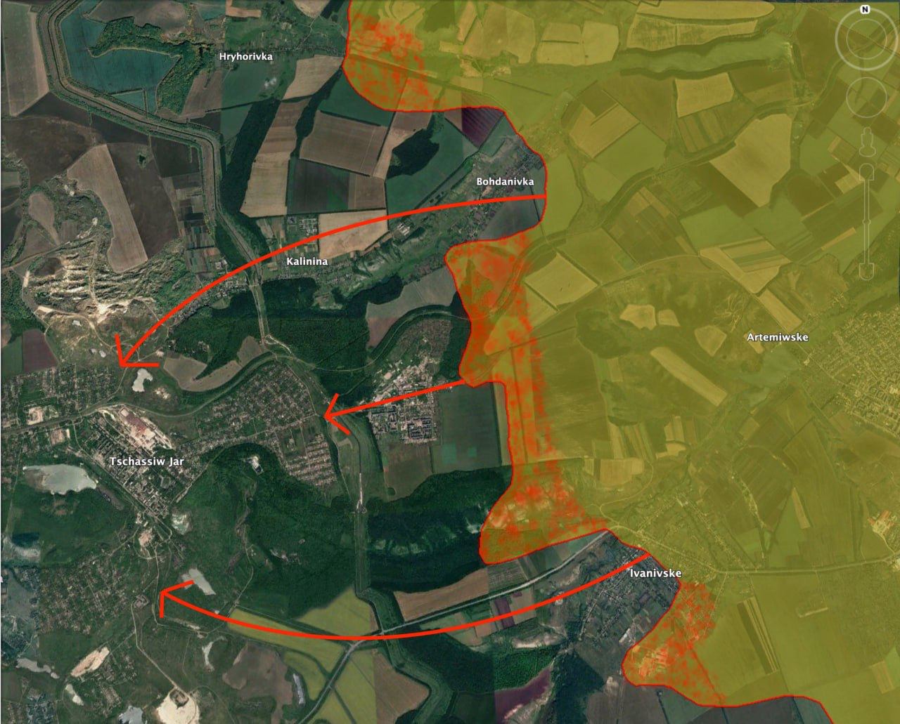 Военный аналитик Bild Юлиан Репке пишет, что Россия наступает на Часов Яр тактикой двойного удара: одновременно нанося фронтальный удар с востока и с флангов на юге и севере.