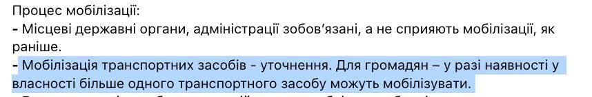 11:58 У украинцев, имеющих более одного транспортного средства, его могут мобилизовать на нужды ВСУ.