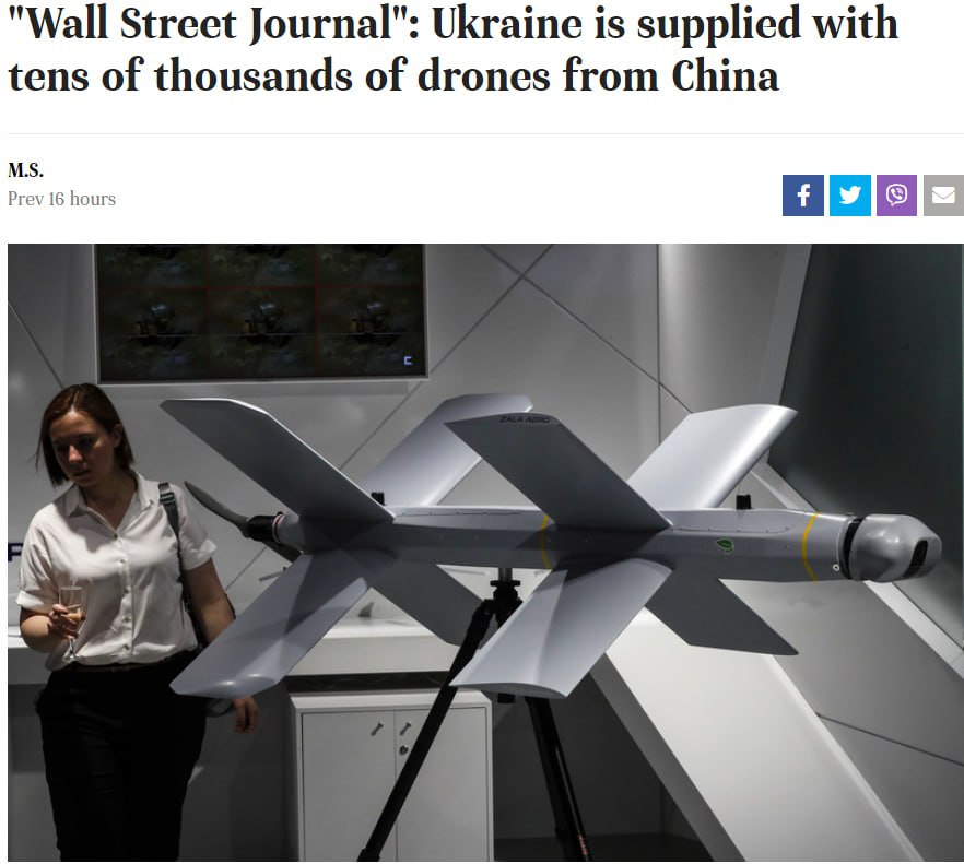 Издание пишет, что Украина закупает у Китая как беспилотники, так и комплектующие к ним.