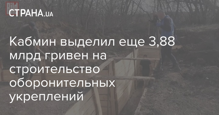 Кабинет министров выделяет дополнительные 3,88 млрд грн на строительство оборонительных укреплений.