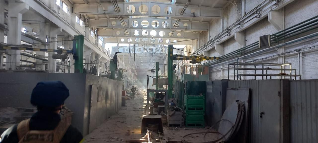 В результате сегодняшнего удара РФ частично разрушена кровля нежилого помещения, произошло возгорание. Судя по фото, пострадало предприятие.